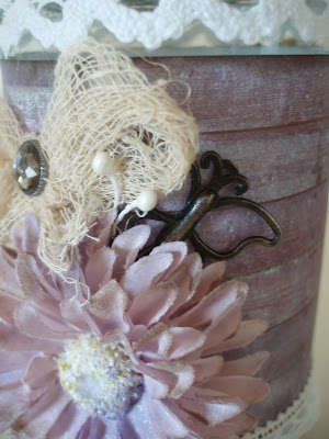Blomsten er sprayet med lilla glimmermist, og svertet litt.